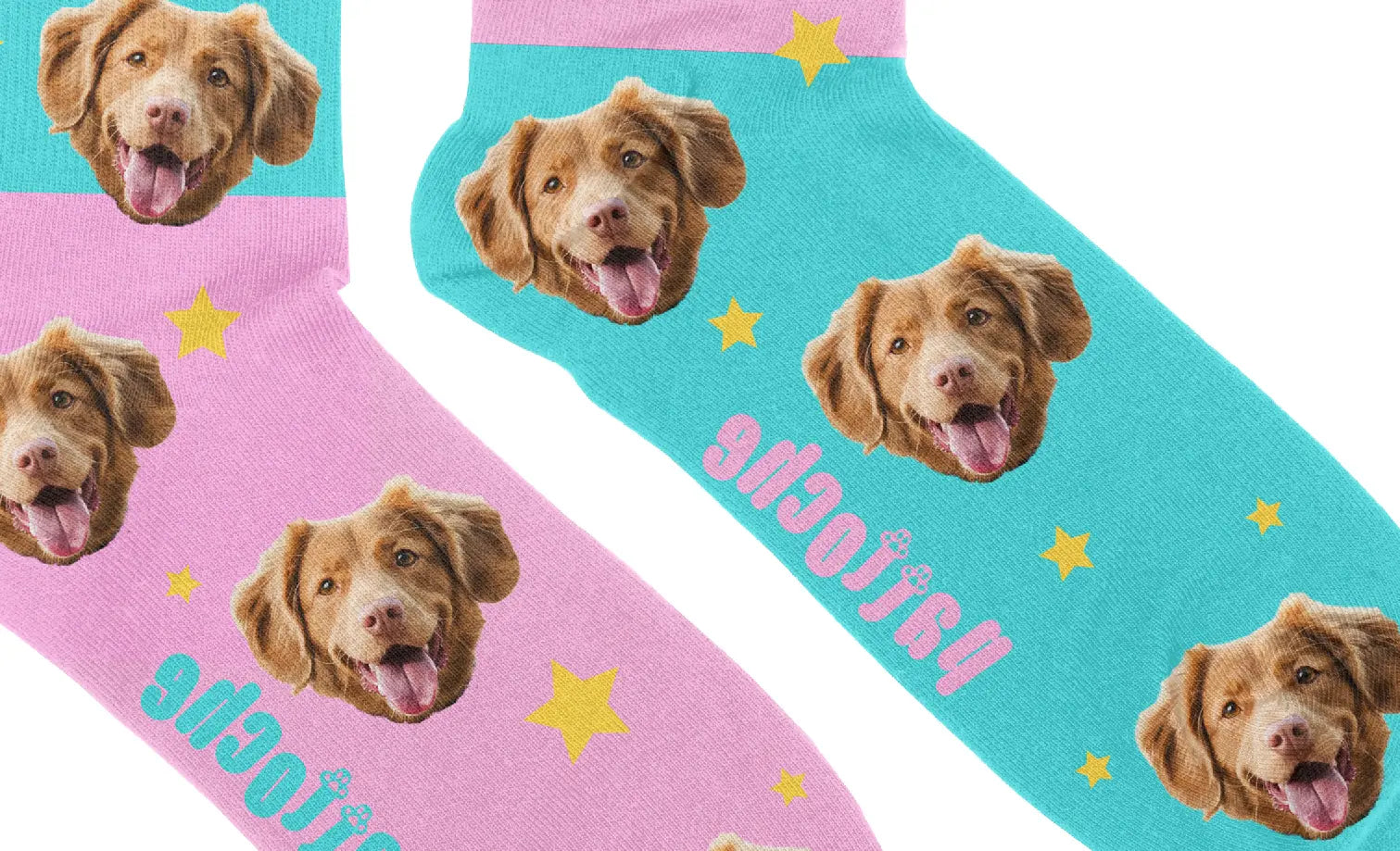 Envoyez-nous une photo de votre chien ou chat, on s'occupe du reste. Chaque paire de chaussettes personnalisées artisanales fabriquées en Belgique est unique, comme votre animal.